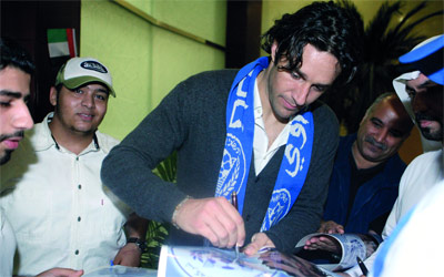 لوكا توني لحظة وصوله إلى نادي النصر. الإمارات اليوم