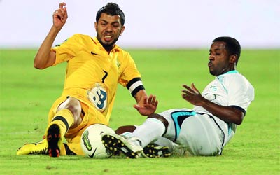 عيسى علي (يسار) في مباراة أمام بني ياس. تصوير: إريك أرازاس