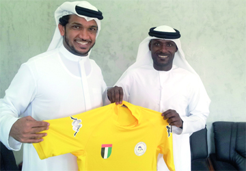 عبدالسلام جمعة (يمين) يتسلّم قميصه الجديد. من المصدر
