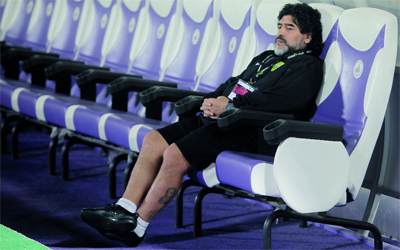 مارادونا أمضى عاماً مثيراً مع فريق الوصل من دون تحقيق نتائج تذكر. تصوير: أسامة أبوغانم