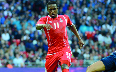 أحمد خليل أهدر فرصة محققة لهز شباك منتخب بريطانيا. أ.ف.ب