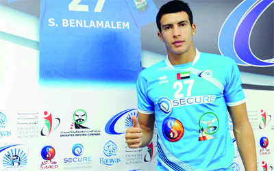 بلمعلم يستعرض قميصه الجديد مع بني ياس. من المصدر