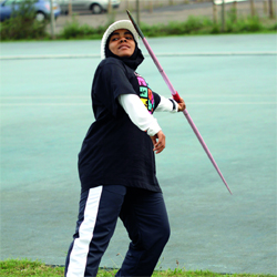 المطروشي تشارك في نهائي رمي الرمح. تصوير: جابر عابدين