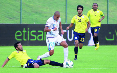 زيدان يحاول اجتياز لاعبين من الظفرة. تصوير: إريك أرازاس