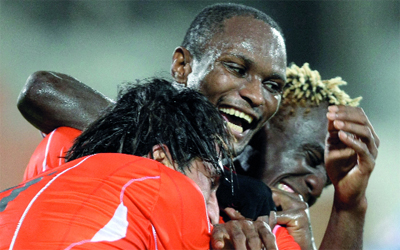 فرحة محترفي عجمان بالتعادل. تصوير: أسامة أبوغانم