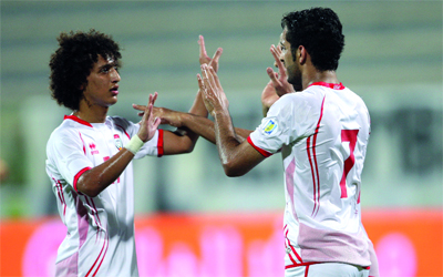 لاعبو المنتخب استعرضوا مهاراتهم أمام البحرين. تصوير: أسامة أبوغانم