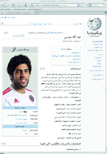 ويظهر على صفحة موسى في «ويكيبيديا» وتم تعديلها في آخر مناسبة في 11 أكتوبر الجاري، تفاصيل مثل ان لاعبه المفضل عالمياً هو زميله البرازيلي ريكاردو أوليفيرا، وفريقه المفضل محلياً الجزيرة، وعالميا مانشستر سيتي، والهوايات المفضلة السينما وكرة القدم واللون المفضل الأبيض والأسود، بينما النادي الأسوأ في العالم نادي العين.