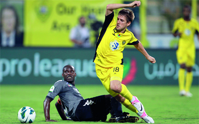محترف الوصل ألفارو يقود هجمة صوب مرمى الظفرة. تصوير: سالم خميس