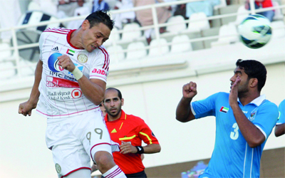 أوليفيرا يسدد برأسه على مرمى دبا الفجيرة. تصوير: إريك أرازاس
