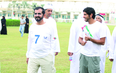 شهد صاحب السمو الشيخ محمد بن راشد آل مكتوم، نائب رئيس الدولة رئيس مجلس الوزراء حاكم دبي، أمس، سباق «مهرجان فخر الأجيال» للقدرة الذي أقيم بسيح السلم في دبي. وشهد السباق أيضا سمو الشيخ حمدان بن محمد بن راشد آل مكتوم، ولي عهد دبي رئيس مجلس دبي الرياضي، وسمو الشيخ حمدان بن راشد آل مكتوم، نائب حاكم دبي، وزير المالية، والشيخ ناصر بن حمد آل خليفة رئيس اللجنة الأولمبية ورئيس هيئة الشباب والرياضة في مملكة البحرين، وتوج الفارس حمد الكعبي بطلا للسباق.