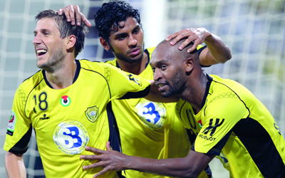 شيكابالا (يمين) لم يشارك مع الوصل أمام دبا الفجيرة بسبب الإصابة. تصوير: أسامة أبوغانم