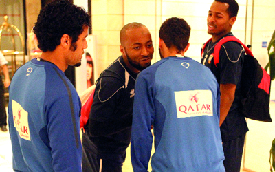 تجمع منتخب الإمارات مع نظيره القطري في فندق واحد، رغم ان الفريقين يلعبان في مجموعة واحدة ويتواجهان في اليوم الاول في المباراة التي اقيمت امس، ورغم حساسية التقاء عناصر المنتخبين المتنافسين عن احدى بطاقتي التأهل الى الدور الثاني، الا أن اجواء الود بقيت مسيطرة على اللاعبين. والتقطت مجموعة من الصور للاعبي منتخب الإمارات اثناء تجوالهم في الفندق، مثل اسماعيل مطر، ولاعبي ومدرب قطر أتوري.