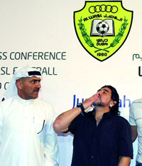 بن فهد يؤكد عدم تفكير الوصل في إعادة مارادونا إلى منطقته الفنية. تصوير: أسامة أبوغانم