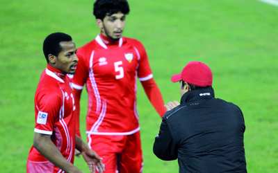 مهدي علي يوجه لاعبيه خلال لقاء عمان. تصوير: أسامة أبوغانم