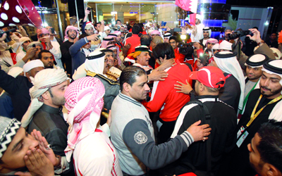عاش الجمهور الإماراتي في المنامة أجواء احتفالية رائعة بعد الفوز الثمين على نظيره العماني بهدفين نظيفين الجمعة الماضية، ليضمن التأهل بالعلامة الكاملة إلي المربع الذهبي من بطولة «خليجي 21». ويمني المشجعون النفس ببلوغ المباراة النهائية لتكرار الاحتفالية ولكي يجوبوا شوارع المنامة فرحاً باتجاه تحقيق اللقب.