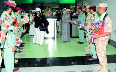 استقبلت شرطة أبوظبي والعين والفجيرة في مطارات الدولة الجماهير الإماراتية العائدة من المنامة بالورود، وتوزيع الحلويات، وتأمين سبل وصولهم سالمين الى بيوتهم، تثميناً لدورهم البارز في دعم وتشجيع المنتخب الوطني الفائز بلقب «خليجي 21»، على حساب المنتخب العراقي بعد الفوز في المباراة النهائية 2-1.