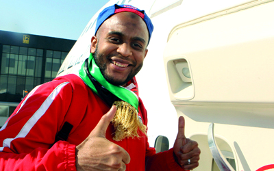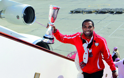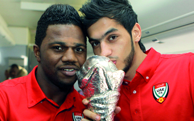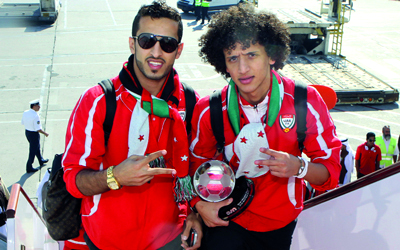 عاش لاعبو المنتخب الوطني، والبعثة الرسمية المشاركة في كأس الخليج بنسختها الـ21، التي اختتمت في البحرين ليلة الجمعة، أجواءً احتفالية مميزة على متن الطائرة الخاصة، التي أقلتهم من المنامة إلى مدينة العين صباح أول من أمس، بعد فوزهم باللقب للمرة الثانية في تاريخ البلاد. وأدى اللاعبون حركات عفوية مضحكة أمام كاميرا، الزميل المصور أسامة أبوغانم، تعبّر عن فرحتهم بالإنجاز الذي تحقق لأول مرة في بطولة خارج الدولة، تحت قيادة المدرب الوطني المهندس مهدي علي.