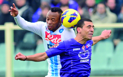 أجبر فيورنتينا ضيفه نابولي على الاكتفاء بالتعادل 1-1، امس، على ملعب ارتيميو فرانكي في المرحلة الـ21 من الدوري الإيطالي، مسدياً خدمة كبيرة ليوفنتوس حامل اللقب الذي ابتعد في الصدارة بفارق خمس نقاط. ولم ينعم نابولي كثيراً بالنقطتين اللتين استعادهما بعد ان قرر الاتحاد الإيطالي، الخميس الماضي، أن يلغي العقوبة التي فرضها عليه وعلى لاعبيه باولو كانافارو، وزميله في خط الدفاع جانلوكا غرافا بإيقافهما لستة اشهر.