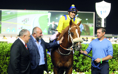 الحصان «ذا أباتشي» الفائز باللقب. تصوير: أسامة أبوغانم