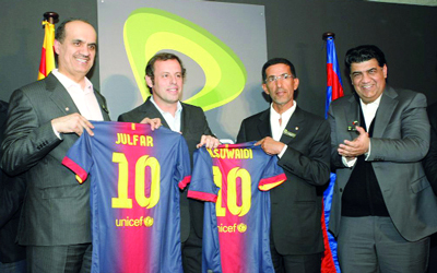 وتم توقيع العقد خلال المؤتمر العالمي للاتصالات المتنقلة 2013، الحدث الرئيس لصناعة الاتصالات المقام في مدينة برشلونة، بحضور الرئيس التنفيذي لمجموعة «اتصالات»، أحمد جلفار، ورئيس نادي برشلونة ساندرو روسل.