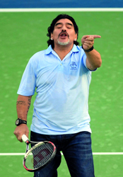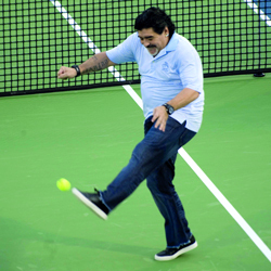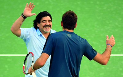 فاجأ أسطورة كرة القدم الأرجنتيني، دييغو مارادونا، مواطنه المصنف الخامس على العالم، خوان مارتن ديل بورتو، عقب فوز الأخير في الدور الـ16 لتنس الرجال، على الهندي سومديف ديوارمان، بالنزول إلى أرض الملعب، لمعانقته وتهنئته، ومن ثم اللعب ضده في مباراة ودية.