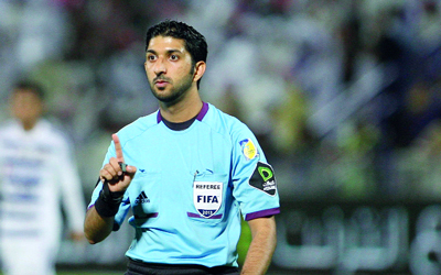 الحكم محمد عبدالله حسن خلال قيادته لقاء العين والجزيرة. تصوير: إريك أرازاس