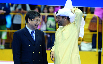 السركال مع رئيس الاتحاد الآسيوي جيلونغ. تصوير: أسامة أبوغانم