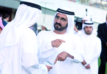 محمد بن راشد يتابع السباق. تصوير: أسامة أبوغانم