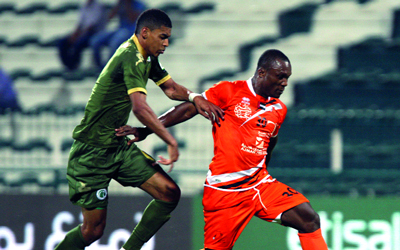 لاعب الشباب حسن إبرهيم (يسار) ينضم إلى المنتخب بدلاً من عبدالله موسى. تصوير: مصطفى قاسمي