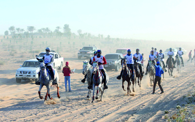 شهد صاحب السمو الشيخ محمد بن راشد آل مكتوم، نائب رئيس الدولة رئيس مجلس الوزراء حاكم دبي، سباق كأس ولي عهد دبي للقدرة لمسافة 120 كيلومترا، الذي أقيم صباح أمس بمدينة دبي الدولية بسيح السلم، وتوج بلقبه الفارس راشد أحمد البلوشي على صهوة الجواد «دافلن بارك بيكاسو» لإسطبلات الريف ضمن مهرجان ولي عهد دبي للقدرة، الذي افتتح أول من أمس بسباق الإسطبلات الخاصة والمشاركات الفردية، والذي أحرز لقبه الفارس سعيد المري على صهوة جواده «روالان سايمون»، من إسطبلات فيصل بن زعل للقدرة.