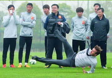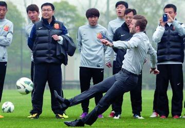 يبدو أن لاعب باريس سان جيرمان الفرنسي، الإنجليزي ديفيد بيكهام، نسي كرة القدم خلال زيارته إلى الصين الممتدة إلى خمسة أيام، بدعوة من الاتحاد الصيني، بهدف نشر اللعبة في «بلاد التنين»، وظهر بيكهام في أحد الملاعب يسدد الكرة بصورة خاطئة، فسقط أرضاً أمام عدسات المصورين.