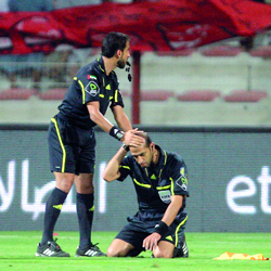 إصابة الحكم المساعد الجلاف بجسم معدني رماه أحد المشجعين