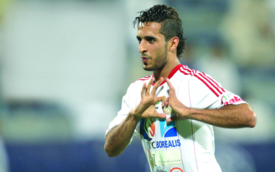 مبخوت سجل الهدف الأول للجزيرة. تصوير: أسامة أبوغانم