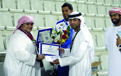 وقدم مدير العلاقات العامة بنادي النصر وليد عبدالرحمن الدرع التذكارية وشهادة تقدير إلى فهد المنصوري، بعد مباراة الوحدة والنصر، أول من أمس، في دوري المحترفين التي أقيمت على ملعب الوحدة وسط حضور مكثف من جماهير النصر التي أشادت بالدور الوطني الذي قامت به جماهير الوحدة في تشجيع العميد في البطولة الآسيوية.