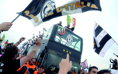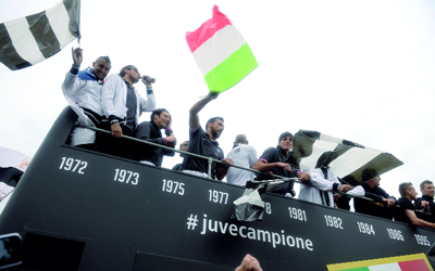 طافت حافلة فريق يوفنتوس الإيطالي أرجاء مدينة تورينو بعد فوز «السيدة العجوز» بلقب «الكالتشيو» للمرة الـ31 في تاريخ النادي العريق، واحتفل الآلاف من الجماهير باللقب الثاني على التوالي بعدما قدم اليوفي أروع عروضه في الموسم الحالي وحسم اللقب بجدارة.