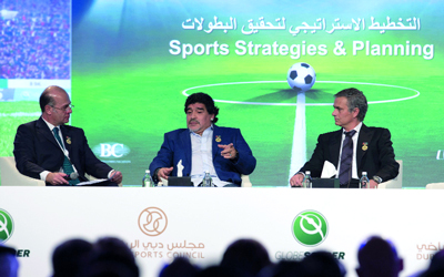 ويشارك في الملتقى السفير الشرفي للرياضة في دبي الأسطورة الأرجنتيني دييغو مارادونا، ولاعب ريال مدريد سابقا الإسباني ميشيل سلغادو والمستشار الفني لشركة النصر لكرة القدم السويدي سفين أريكسون.