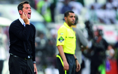 كيكي يوجه لاعبي الأهلي أثناء المباراة. تصوير: أسامة أبوغانم