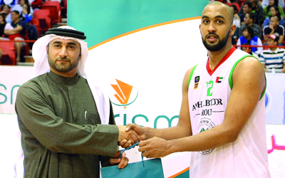 قيس عمر خلال تكريمه كأفضل لاعب شاب في مباريات دولية دبي. من المصدر