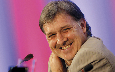 يعتقد الأرجنتيني خيراردو «تاتا» مارتينو المدير الفني الجديد لنادي برشلونة، أن عدم حصد الفريق الكتالوني لأي لقب هذا الموسم سيكون بمثابة «فشل ذريع»، لأنه «ناد معتاد الفوز، وما يقدمه فريقه يعد بين الأفضل في العالم». وأقر مارتينو خلال المؤتمر الصحافي لتقديمه لوسائل الإعلام الإسبانية أمس، بأنه يصل إلى ناد لم يتخيل «قط» أن يتولى تدريبه، بسبب المشكلات الصحية التي تعرض لها سلفه تيتو فيلانوفا، الذي تحدث إليه في الساعات الأخيرة.