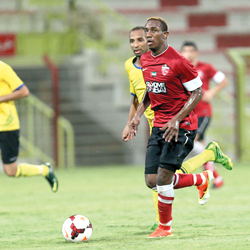 أحمد خليل في طريقه إلى مرمى العروبة. من المصدر