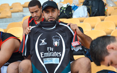 المنتخب يروج لملف «دبي إكسبو 2020» خلال منافسات سباعيات الرجبي. من المصدر