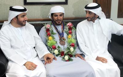 أحمد بن حشر مستقبلاً بطل آسيا. من المصدر