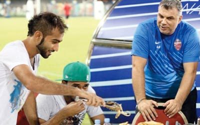 ظهر لاعب الأهلي عدنان حسين مع مدربه الروماني اولاريو كوزمين، وأمامهما صحن خاص بأكلة «خروف محشي»، تعرف محلياً بـ«الغوزي»، وذلك قبل لقاء الفرسان وبني ياس في دوري الخليج العربي، أول من أمس، الذي انتهى بفوز الأهلي 3-2. وبات واضحاً أن «دهون الغوزي» لم تحل دون تألق الأهلي وحفاظه على صدارته. ووضع عدنان حسين الصورة على حسابه الشخصي على موقع التواصل الاجتماعي «إنستغرام»، قبل يوم من المباراة. وقام أحد متابعي عدنان بانتقاد تناول الأخير وزملائه هذه الأكلة غير الصحية، لكن عدنان رد بطريقته المعتادة «حياك أخوي، هدي أعصابك، وعطني رأيك في الغوزي». وطالب متابعون آخرون عدنان بألا يتناول الأكلة كثيراً، حفاظاً على لياقته.