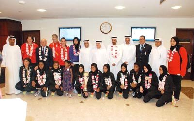 وأقام اتحاد ألعاب القوى أول من أمس، في قاعة المجلس بمطار دبي الدولي استقبالاً كبيراً للاعبات الناشئات بعد عودتهن من بطولة دول مجلس التعاون للناشئات في البحرين وإحرازهن أربع ميداليات ذهبية وميدالية فضية وأخرى برونزية.