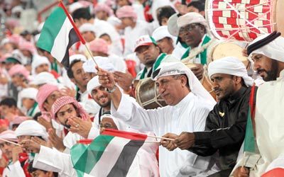 وشهدت المباراة التي حجز من خلالها الابيض بطاقة التأهل رسمياً الى نهائيات امم اسيا، وجود أكثر من 11 الف متفرج رفعوا اعلام الامارات في مختلف أرجاء الملعب، وشجعوا اللاعبين الذين عبروا عن فرحتهم وسعادتهم بهذا الدعم الجماهيري.
