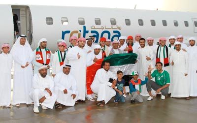 استغرقت الرحلة الجوية التي نقلت جمهور الامارات من مطار الفجيرة الى مطار ابوظبي 45 دقيقة، بهدف دعم ومؤازرة منتخب الامارات في مباراته امام هونغ كونغ، التي أقيمت أول من أمس، على ملعب محمد بن زايد في نادي الجزيرة، ضمن الجولة الرابعة من منافسات المجموعة الخامسة لتصفيات امم آسيا 2015 في استراليا، وفاز بها الابيض 4-صفر.