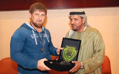 شهد الرئيس الشيشاني رمضان قاديروف مباراة منتخب بلاده الودية أمام نظيره الروسي، أول من أمس، على ملعب الوصل، في اللقاء الذي انتهى بتعادل الفريقين 1-1. وحرص رئيس مجلس إدارة نادي الوصل عبدالله حارب على مشاهدة اللقاء مع الرئيس الشيشاني، إذ قام قاديروف بجولة في نادي الوصل قبل مشاهدة المباراة الودية، وقام حارب بإهدائه درع النادي.