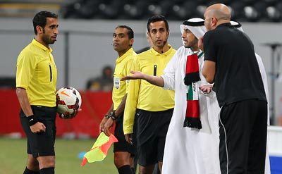زينغا يعترض على قرارات التحكيم خلال موقعة الجزيرة مع فريقه السابق النصر. تصوير: إريك أرازاس