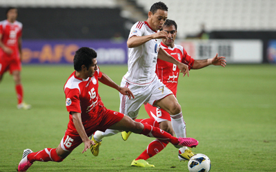 لاعب الجزيرة أوليفيرا يشق دفاع تراكتور الإيراني في البطولة الماضية. تصوير: إريك أرازاس