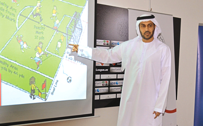 واستعرض أحمد مع لاعبي الظفرة بعض الحالات التي شهدها دوري الخليج العربي أخيراً، عن طريق الفيديو، وأجاب عن استفساراتهم حول قانون اللعبة.